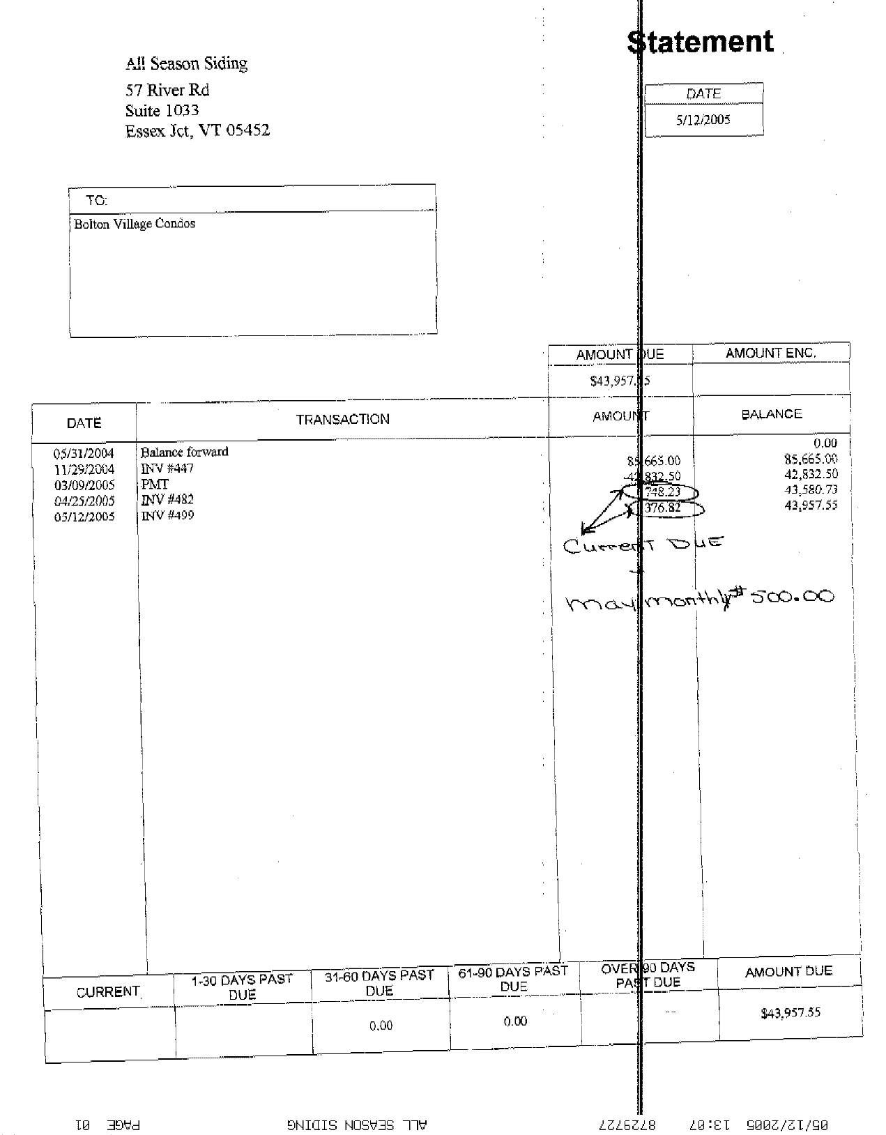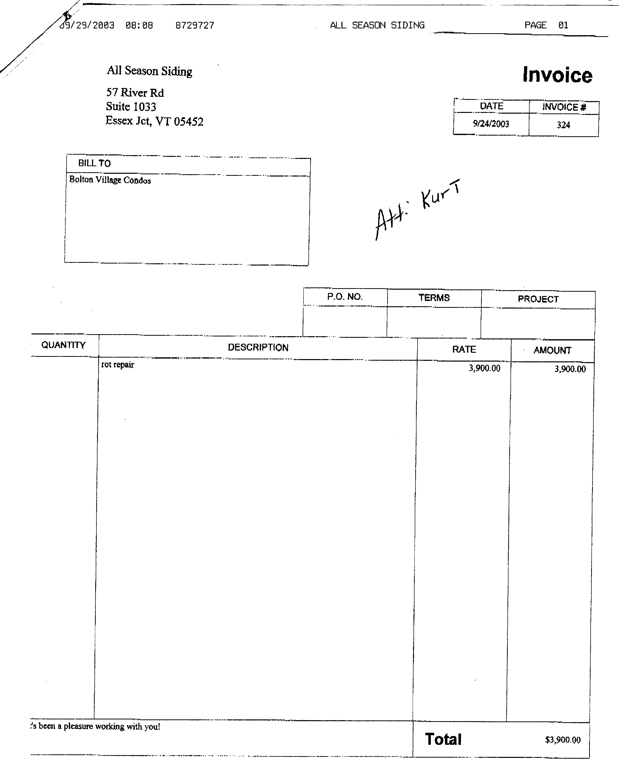 Notes from conversation between Kurt and Donna of All Season Siding 03/17/04