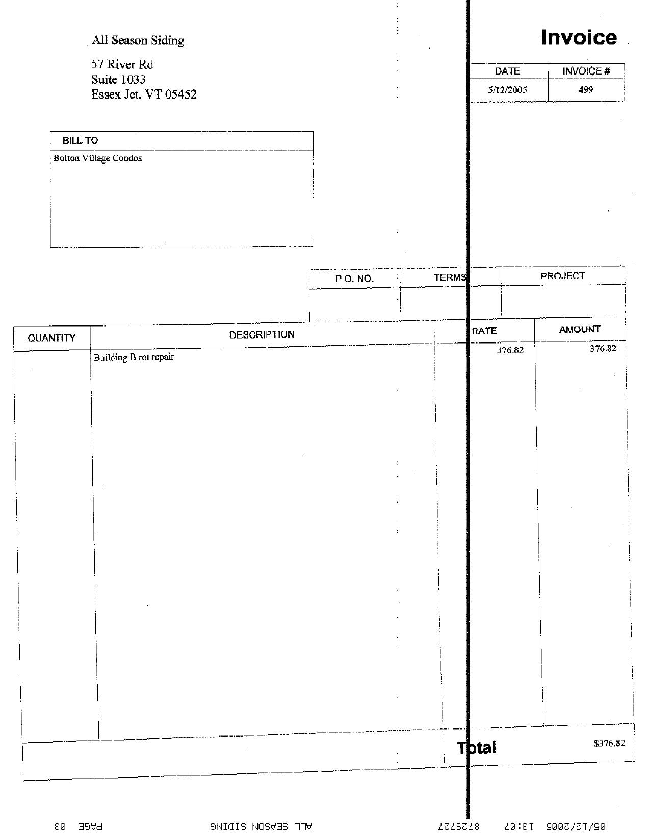 Misc Rot Repair Invoice: