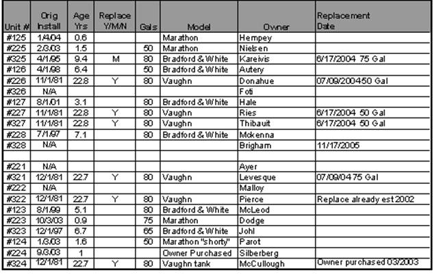 Hot Water Heater Aging Report........................................................................................................ 36